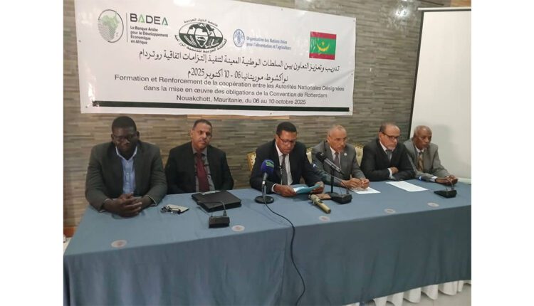 بدأت اليوم الاثنين في نواكشوط، أعمال دورة لتدريب وتعزيز التعاون بين السلطات المعنية بتنفيذ اتفاقية روتردام، تنظمها وزارة الزراعة والسيادة الغذائية بالتعاون مع المنظمة العربية للتنمية الزراعية ومنظمة الأمم المتحدة للأغذية والزراعة (فاو)، بتمويل من المصرف العربي للتنمية الاقتصادية في افريقيا.
