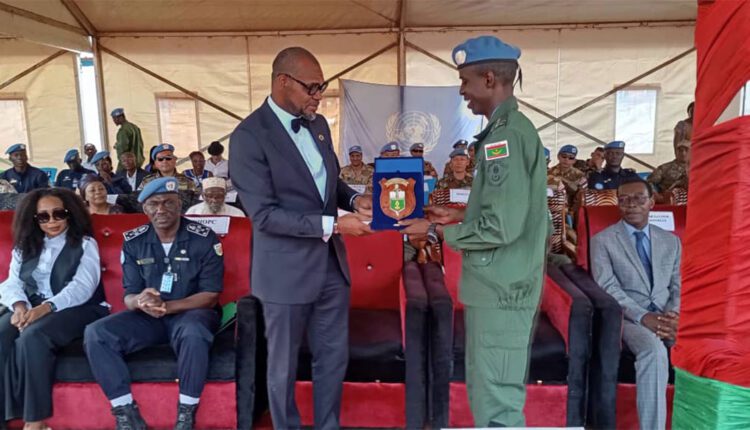 وشح رئيس ديوان بعثة الأمم المتحدة لإفريقيا الوسطى “مينيسكا” السيد ريني أونانا، نيابة عن الممثلة الخاصة للسكرتير العام للأمم المتحدة السيدة فالانتين رغوابيزا، رئيسة البعثة، أمس الأربعاء في بانكي، عناصر وحدة الدرك الموريتانية العاملة ضمن قوات حفظ السلام بجمهورية وسط إفريقيا.